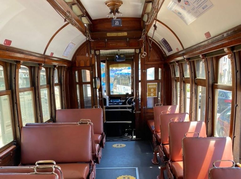Entrar no elétrico é mergulhar no passado. O seu interior continua fiel ao design dos inícios do século XX, onde as madeiras e o ferro reinam. As costas dos bancos têm uma característica peculiar: movimentam-se, permitindo ao passageiro escolher para que lado se quer voltar durante a viagem. As janelas, de caixilho em madeira, ao contrário das dos meios de transporte mais modernos, abrem totalmente, o que nos permite inspirar os aromas da cidade. Assim que o elétrico se coloca em movimento um som curioso, para sempre associado a este meio de transporte, enche a carruagem e marca o início da viagem.